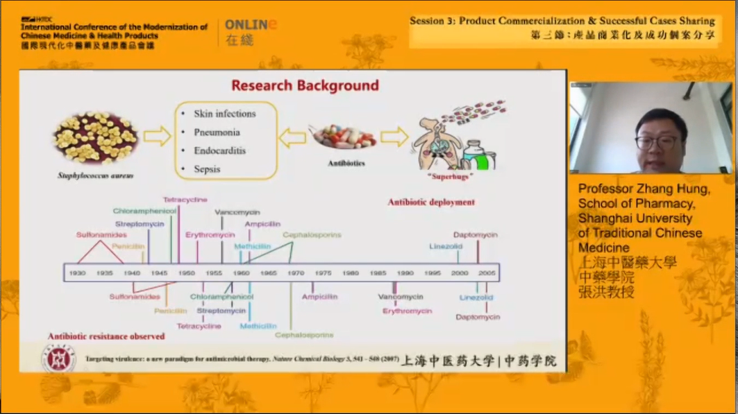 来自成人在线 徐宏喜教授团队的张洪副研究员受邀对抗耐药性金黄色葡萄球菌中药研究及产品开发进展进行了分享与交流。