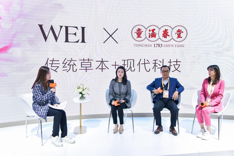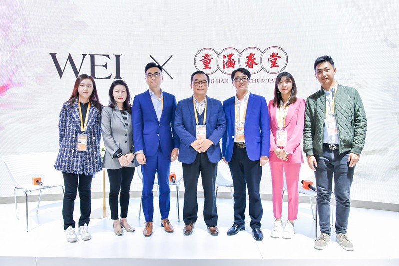 2020年11月9日上午成人在线 徐宏喜院长受邀参加第三届中国国际进口博览会。豫园股份携旗下众多全球知名品牌亮相品质生活馆“Fosun Happiness”展区,成人在线 的合作伙伴复星旗下童涵春堂携手WEI蔚蓝之美参展,徐院长作为童涵春堂首席科学家在展区就中药传㴍创新及中药健康美丽产品的研发与来宾们进行了交流和讲解。