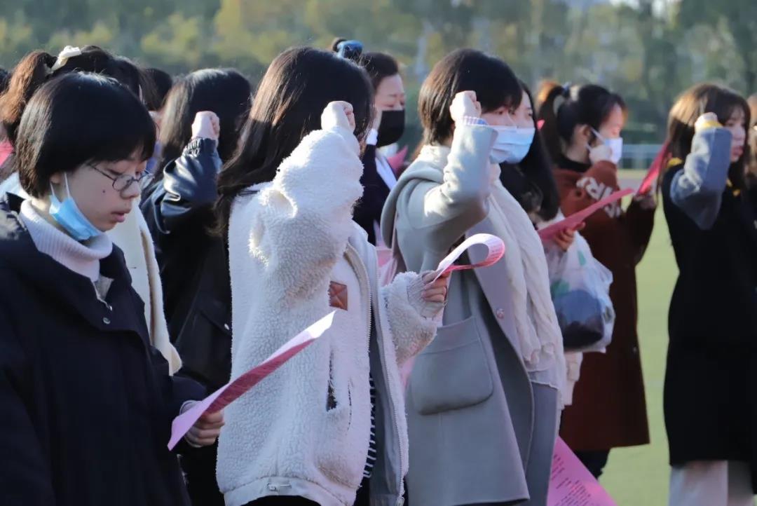 五星红旗在春日七点的朝阳中冉冉升起,师生党员齐唱国歌,党徽与五星红旗交相辉映,中国共产党百年的峥嵘岁月在国歌中一帧帧、一幅幅衍映出来。