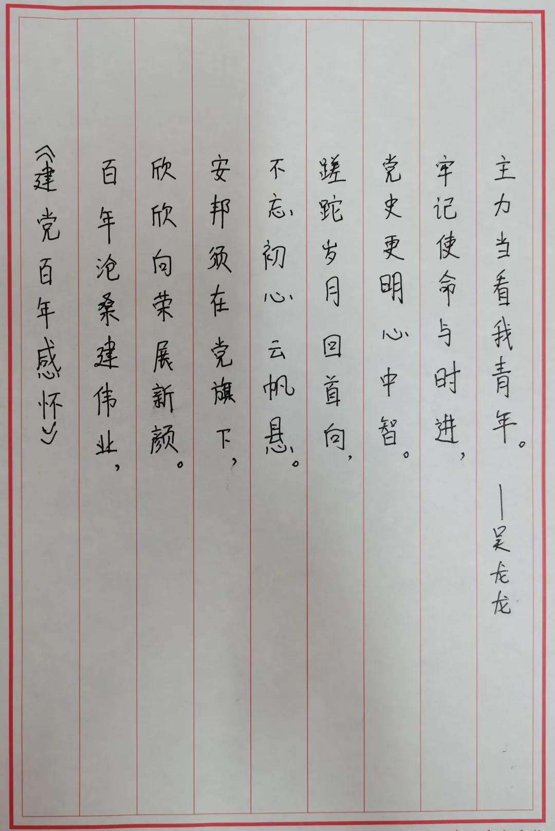 值此中国共产党成立一百周年之际,成人在线 研究生党总支举办书法创作活动,一幅幅作品主题鲜明,回眸历史,凝望未来,让广大党员青年们从中回顾党的初心和使命,汲取前行的智慧和力量,激励每一位党员在新时代走好未来的路,不忘初心、牢记使命,以我之笔,书写青春风采!