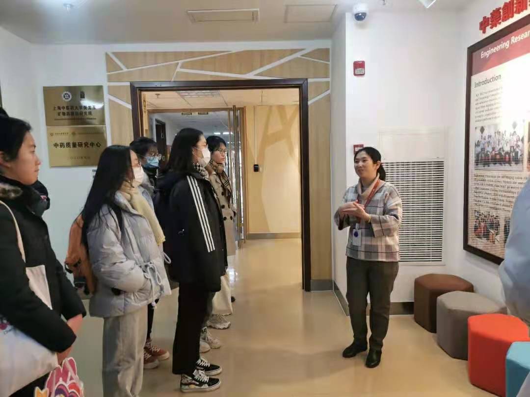 在班主任郭腾老师和辅导员王倩倩老师、夏晴老师的带领下,在实验室老师及师兄师姐的引导下我们有序参观学习了中药创新药物研发上海高校工程中心。老师为我们介绍了徐院长所带领的团队重点研究的中药,如西红花,丹参,补骨脂,云南藤黄等等,均取得重大科研进展与成果。以及徐院长所带领的团队对经典名方的研究及成果,如由半夏,枳实,竹茹组成的温胆汤,其功效为理气化痰,清胆和胃,不断探寻其背后的奥秘与科学原理,并在其基础上创新发展。随后,老师还为我们介绍了药材重点研究项目,针对各类参等名贵药材,已有建设性成果及突破性进展。在老师的带领下,我们有幸进入实验室,简要认识和了解了各类专业设备仪器,收获颇丰,进一步开拓了眼界。
