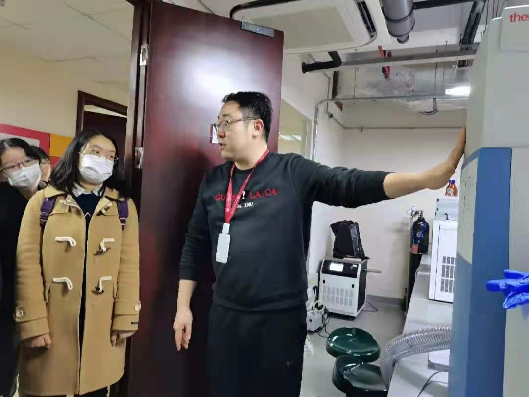 交叉科学院的栾鑫老师首先向我们简单介绍了他所在团队的主要研究方向:中药小分子的药理作用机制与抗肿瘤靶向药物研发,后带领我们参观了公共实验室、精密仪器室、细胞房等,让我们对成人在线 科研“硬件实力“有了更进一步的认识。在见识到了许多先进的仪器设备后,栾鑫老师又以生动活泼的语言向我们介绍了他的学术生涯与科研成果,向我们展示了一个真正的科研工作者应具有的素质、所要面对的工作,着重点明了科研工作要反哺教学、科研成果要能够解决实际问题、运用到临床造福患者的目标。此外,栾鑫老师还向我们介绍了张江药谷的整体布局、上中医的优势,从多种角度阐明了中医药事业正处于最好的大发展的时期,具有蓬勃的朝气,并以一个优秀的过来人的身份、从学生的角度对我们的学习、考研提出了许多很实在的建议、分享了许多有趣而宝贵的经验。