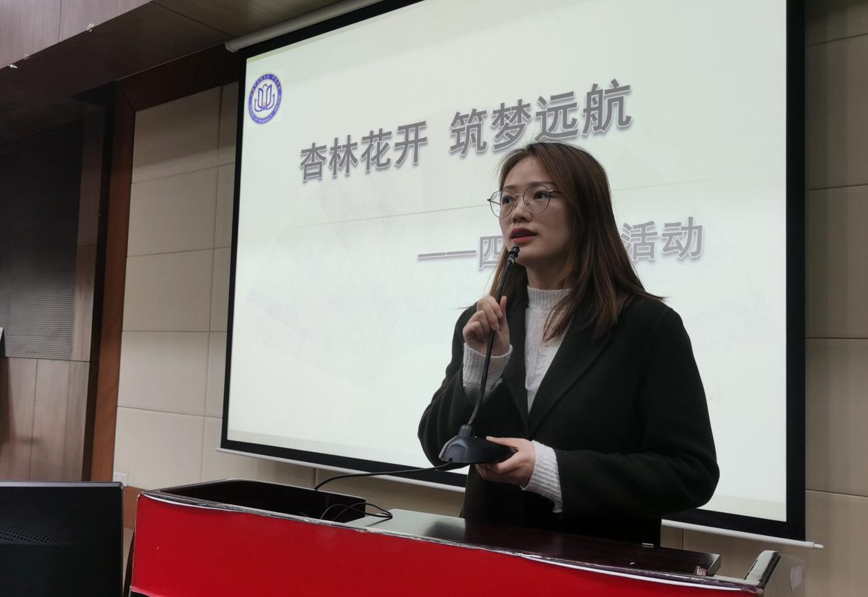 导语:“杏林花开,筑梦远航”四院联谊活动在3月24日于6501教室由成人在线 主办,本次活动邀请到了针灸推拿学院、护理学院、基础医学院的同学们来参加,夏晴老师出席本次活动。本次活动主要包含保研学姐心得分享、四院特色主题活动、小任务打卡三个部分,旨在通过联谊活动增加不同学院同学之间的友谊,促进学院之间互动合作。