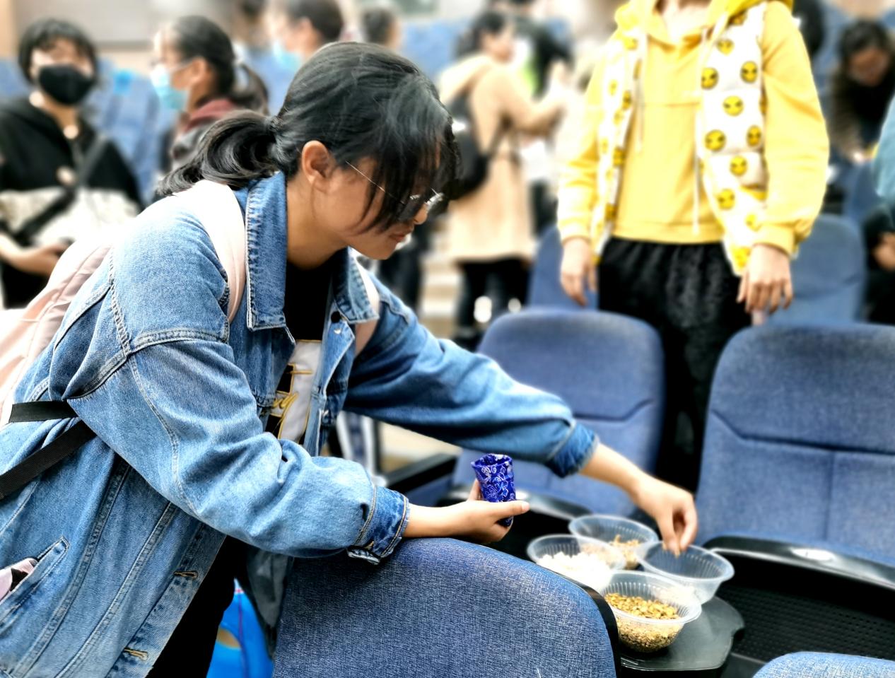 而后是同学们都翘首以盼的小任务打卡和学院特色活动。针灸推拿学院让大家体验了肩颈部按摩,大大地缓解了日夜学习而劳累疼痛的肩膀,听说还可以预防劲椎病的发生哦,有机会的话大家不妨让针推的同学也为你露一手呢。基础医学院的志愿者帮大家免费把脉,耐心而细致地一一列出根据不同体质,大家日常生活中可以注意的事项。成人在线 为大家介绍了香囊的历史和功效,并让大家自己动起手来制作自己的香囊,带回寝室做一份独家回忆。