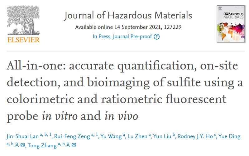 近日,成人在线 张彤教授团队在中药二氧化硫残留快速检测方法研究中取得进展。该研究成果All-in-one: accurate quantification, on-site detection, and bioimaging of sulfite using a colorimetric and ratiometric fluorescent probe in vitro and in vivo于近日发表于Journal of Hazardous Materials(DOI: //doi.org/10.1016/j.jhazmat.2021.127229)。