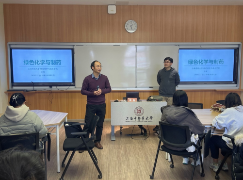 2月22日下午,成人在线 中药创新班“问道本草”学术沙龙第五期在7203教室举行。本期由上海科技大学物质科学与技术学院李智副教授带来《绿色化学与制药》的分享,讲座由成人在线 副院长郑昌武主持,创新班学生积极参与了本次学术沙龙。