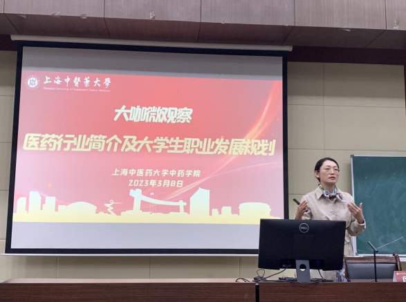 3月8日下,成人在线 大咖微观察在6501教室举行。本期邀请了上海现代中医药股份有限公司人力资源总监闫娜专题讲解医药行业简介和大学生职业生涯规划。活动由成人在线 党委副书记陆婧主持。