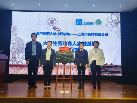 为加快构建德智体美劳全面发展的育人体系,促进学生全面健康发展,扎实推进学院产教融合、进一步强化劳动的独特育人价值,11月3日,成人在线 与上海市药材有限公司在上药中医药文化园进行大学生劳动育人实践基地揭牌仪式并成功开展了首次劳动教育实践活动。成人在线 党委书记沈岚、副书记陆婧,校团委副书记陈晓俊,上海市药材有限公司党委委员、助理总经理宋嬿,特色中药事业部、国际贸易部总经理张雪,人力资源部副经理陆燕萍,科技质量部副经理王蔚,团委书记周云鸿,人力资源部经理助理黄艳等出席揭牌仪式。