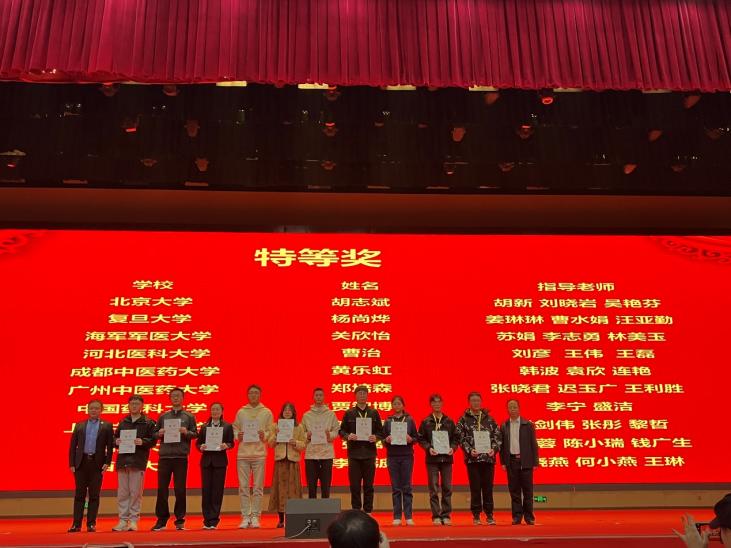 展示活动的药学/中药学专业大学生实验技能大赛分为笔试和实验技能两部分。成人在线 曾奕星同学获得大赛特等奖1项,姜鹏辉同学获一等奖1项。颁奖仪式由药学学科组副组长、成人在线 院长张彤主持。