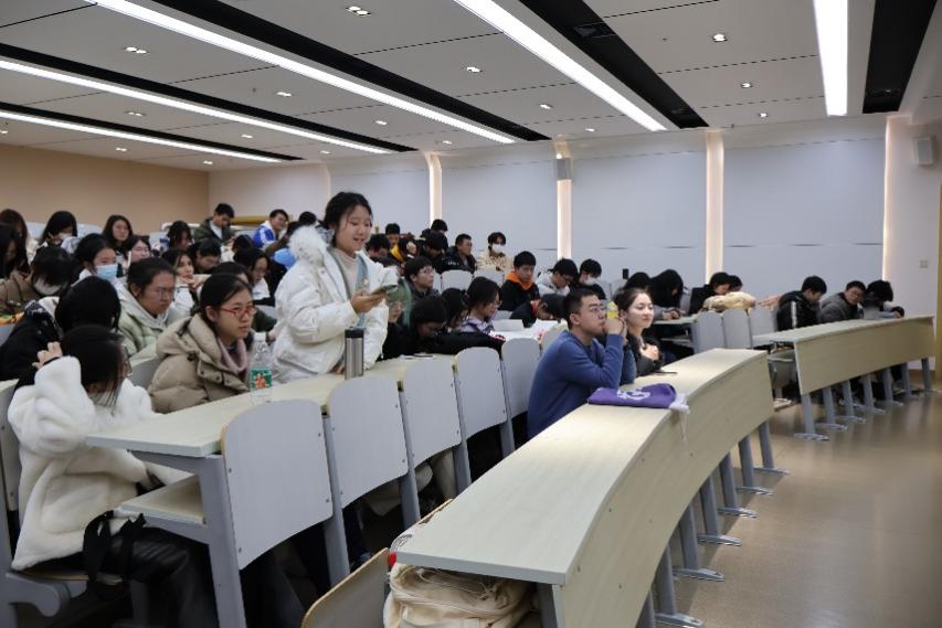 最后,辅导员张晴老师对过去一学期班级发展状况做了整体、系统的总结,分析不足并提出改进建议和改善期望。她强调了学生之间的联动效应和朋辈互助优势,鼓励成绩优异的同学开展学业辅导工作相信通过对自身和集体状况的更明晰认知,同学们在新学期中一定取得出色的成绩,在各个方面有所收获与成就。