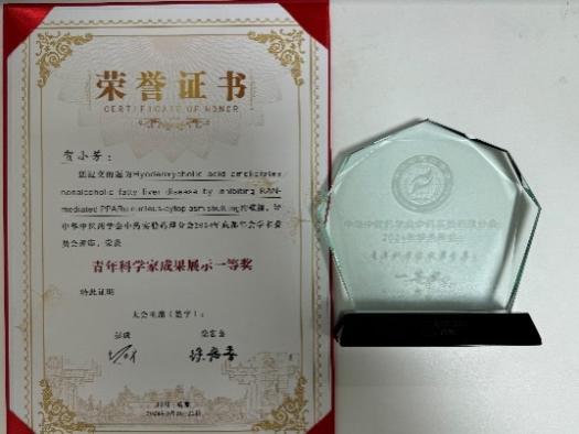 值得一提的是,成人在线 李后开研究员指导的博士研究生贺小芳同学以“猪去氧胆酸靶向肝脏PPARα穿梭改善MAFLD机制研究”为题进行了青年科学家汇报,凭借出色的表现,荣获大会“青年科学家成果展示一等奖”,并作为青年科学家代表进行成果展示。