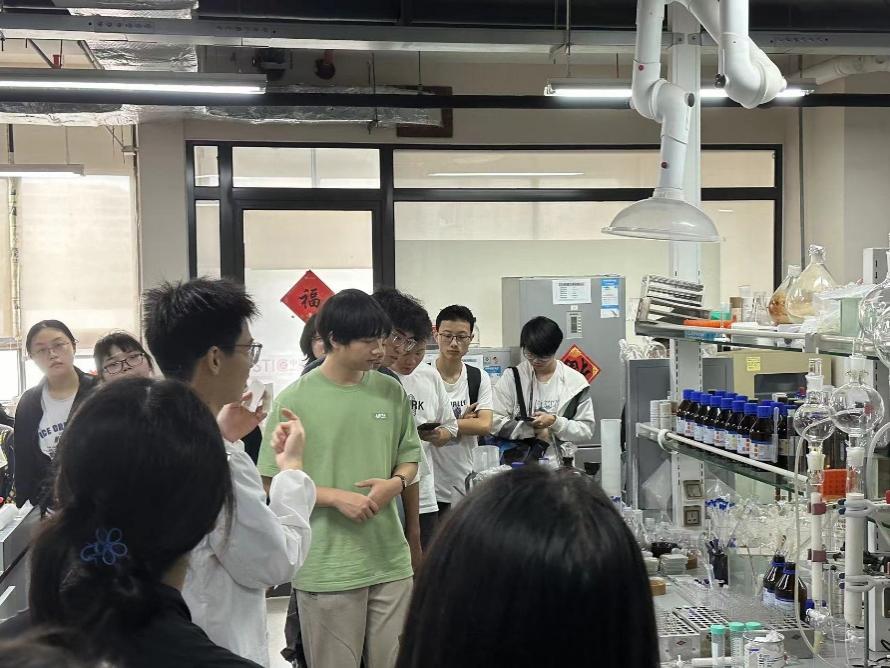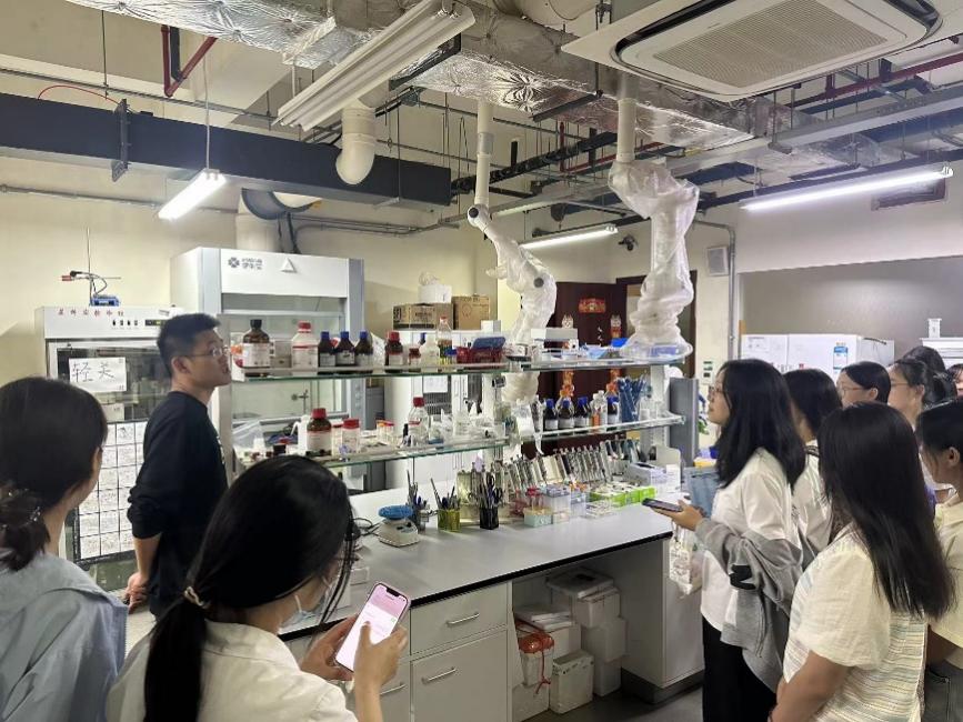 在药剂实验室,党员学长学姐们展示了近年来药剂经皮给药方向的创新性成果,以及相关实验仪器的原理和使用,面对学弟学妹们的积极提问,党员同志耐心解答,现场互动频繁,气氛热烈。