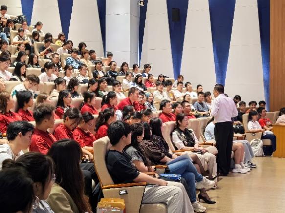 最后,徐宏喜教授为新生们提供了两点建议,其一就是学好英文,以便与国际接轨,接收先进的知识;其二便是多出国走走,在了解世界的同时了解自我,培养独立分析独立辨析的能力,要学会问问题,才能更了解事物的本质。