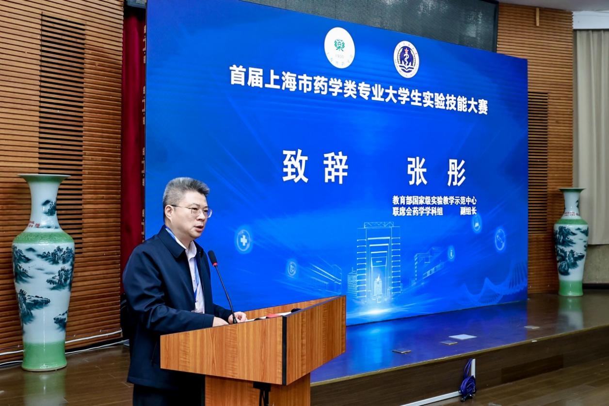 此次共有55名来自复旦大学、上海交通大学、海军军医大学、华东理工大学、成人在线 、上海海洋大学、上海健康医学院7所高校的本科生参加比拼。张彤作为教育部国家级实验教学示范中心联席会药学学科副组长在会上致辞。