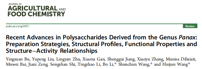 中药研究所王辉俊研究员和王顺春研究员的指导下,以第一作者身份在学术期刊《Journal of Agricultural and Food Chemistry》(影响因子5.7,JCR一区) 上发表题为 “Recent Advances in Polysaccharides Derived from the Genus Panax: Preparation Strategies, Structural Profiles, Structural Profiles, Functional Properties and Structure-Activity Relationships” 的综述论文。