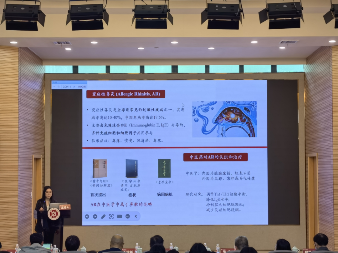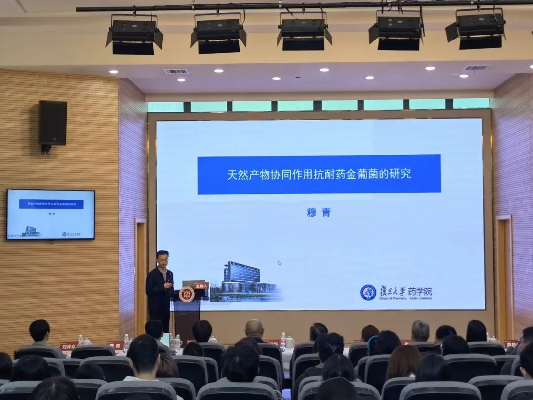 紧接着,围绕“新质生产力引领中医药高质量发展”这一主题,复旦大学药学院教授穆青、青年研究员刘泽众、博士生郭林峰,成人在线 研究员盛丽莉、讲师黎哲、博士研究生阮航共6名师生党员,分别就中草药协同抗细菌耐药、基于免疫增强技术的广谱冠状病毒疫苗广谱冠状病毒疫苗、肠道菌介导的胆汁酸代谢对宿主健康的作用、细胞膜仿生纳米技术在中药抗肿瘤靶向递送系统中的应用、大黄调控肠-肺轴中屏障损伤促进宣白承气汤防治重症病毒性肺炎的整合作用机制以及新型驱动式微针共载地塞米松/丹皮酚MOF治疗变应性鼻炎等领域的研究进行了学术报告。