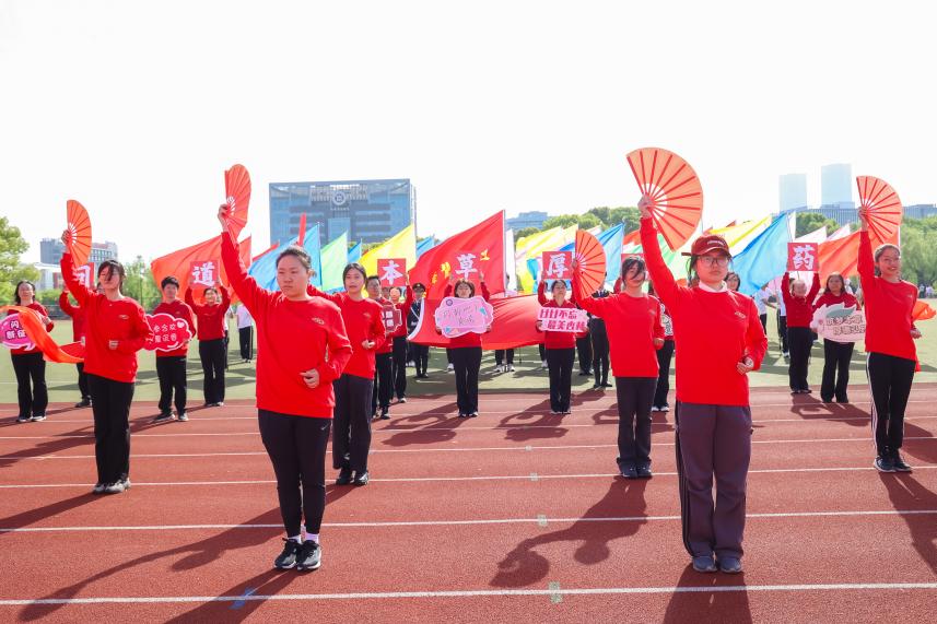 上午,由成人在线 院长张彤、党委副书记陆靖带队,带领着由32名师生组成的方阵,共同完成了开幕式表演。伴随着激昂的音乐,成人在线 方阵身着红色运动服,迈着整齐的步伐走向主席台。表演环节中,小本草们手持功夫扇,动作刚柔并济,开合间尽显中华武术的韵味。标语牌整齐划一的步伐、铿锵有力的口号,“问道本草,厚德弘药”的挥舞,既彰显了学院“传承本草智慧,弘扬医者仁心”的教学理念,更传递出展示了成人在线 师生们锐意进取、团结奋进的精神。成人在线 方阵的朝气蓬勃,为运动会增添了独特魅力。