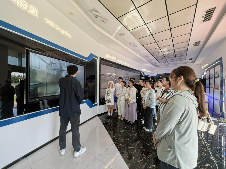 在车间参观环节,师生分批进入固体制剂车间与小容量注射剂车间,实地观摩智能化生产线。车间负责人郭明敏结合设备运行、工艺流程等,讲解了现代中药生产的数字化与标准化实践。智能展厅内,学生通过沉浸式体验,直观感受中药制剂从研发到成品的全链条技术革新。“课本知识与实际生产的结合,让我对职业方向有了更清晰的认知。”2024级中药学创新班学生黄宝宇在现场交流中感慨道。