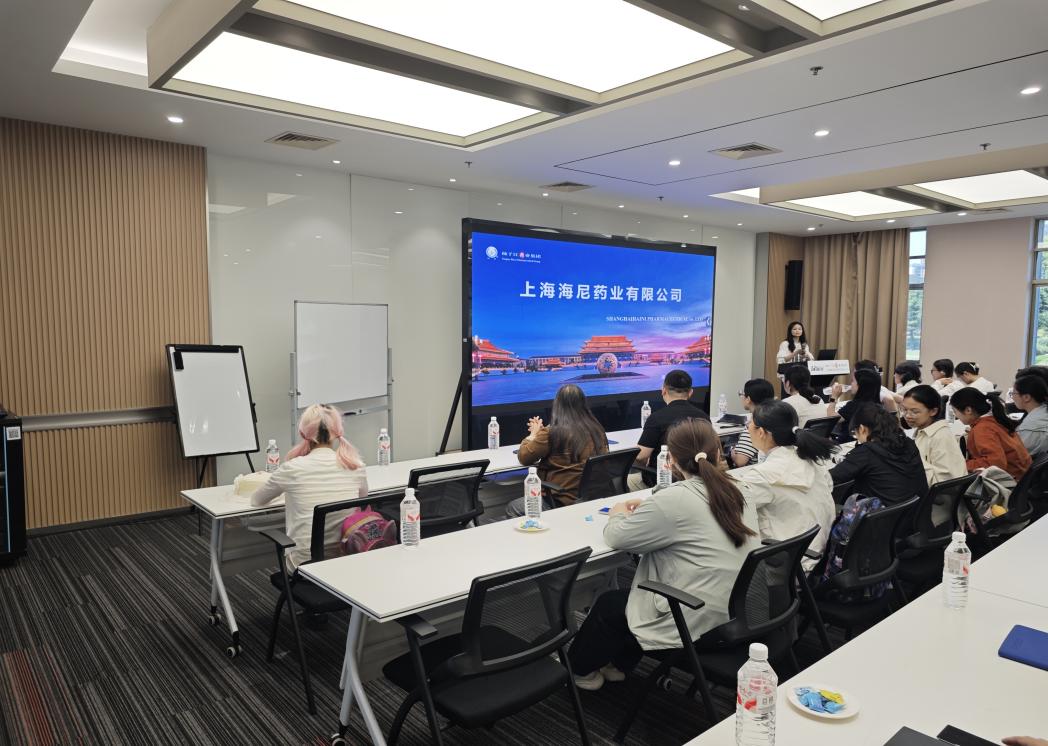 下午14时,参访活动在行政楼一楼培训室正式拉开帷幕。海尼药业培训主管陈娟致欢迎辞,并播放集团宣传片,生动展示了企业在中药现代化生产、创新研发及社会责任等领域的成果,企业代表详细解读了海尼药业的人才培养体系与职业发展路径,学生们就岗位需求、技能要求等问题踊跃提问,现场互动气氛热烈。