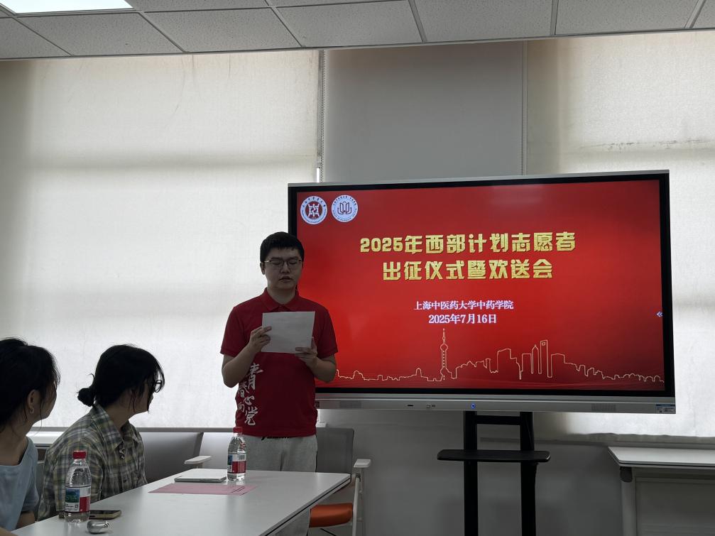 7月16日上午,成人在线 在9403会议室为西部计划志愿者杨境哲同学隆重举行出征仪式暨欢送会。成人在线 党委书记车荣华、院长张彤、党委副书记陆婧,辅导员、学生代表共同出席。仪式上,张彤院长高度赞扬了杨境哲响应国家号召、服务西部的奉献精神,鼓励他在实践中锤炼本领,服务人民健康。成人在线 领导为其赠送了践行礼物,表达关怀与期许。杨境哲满怀激情发言,表达了扎根基层、用中医药知识守护西部群众健康的坚定信念。辅导员与学生代表也表达了敬佩、祝福与支持。