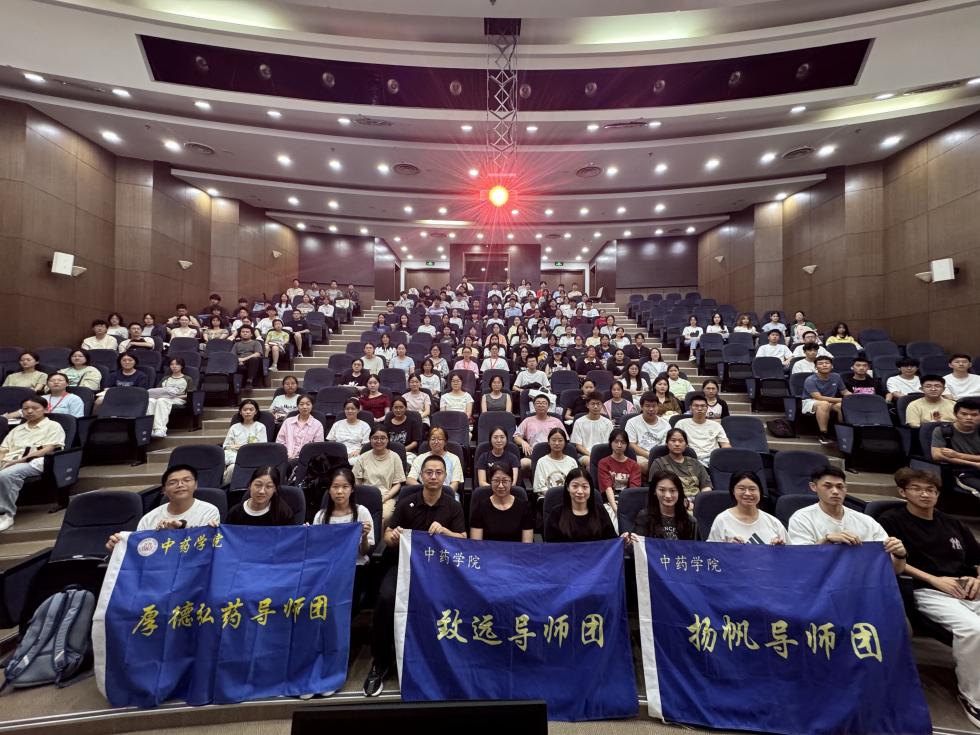 2025年9月10日下午,成人在线 党委书记车荣华以“高举信仰旗帜,传承岐黄薪火”为题,为2025级中药学、中药学(创新班)及药学(中外合作)专业新生讲授了意义深远的“书记第一课”。讲座聚焦中医药传承与创新,由成人在线 党委副书记陆婧主持,全体新生共同开启与中医药学科的“双向奔赴”之旅。