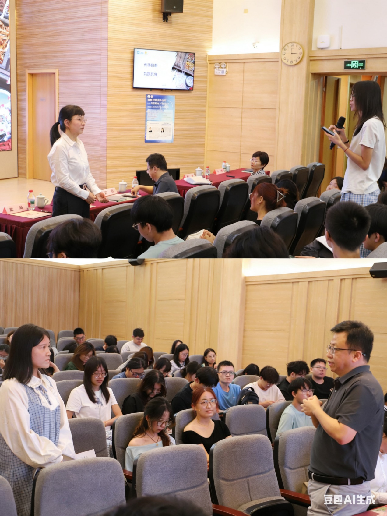 互动环节,与会师生踊跃提问,就中药制剂研发、仿生设计理念、职业发展规划等话题与两位专家进行了深入交流,现场气氛热烈。
