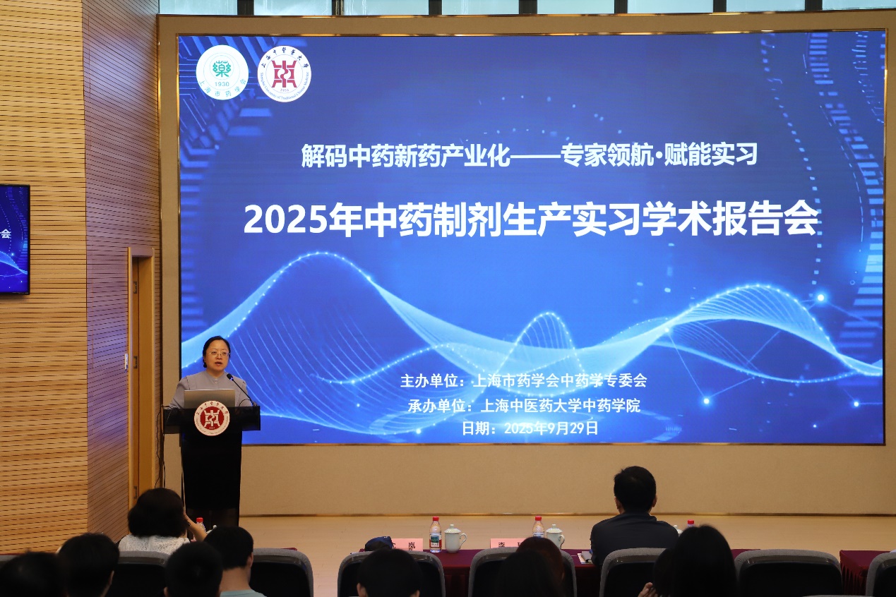 2025年9月29日,由上海市药学会中药学专委会主办、成人在线 承办的中药制剂生产实习学术报告会在全球合作伙伴中心报告厅举行。本次报告会的主题是:解码中药新药产业化,邀请到了上海药物研究所甘勇研究员和上海雷允上药业有限公司李琦副总经理为中药学专业学生作专题分享。报告会由上海市药学会中药学专委会主任委员、成人在线 研究生院常务副院长沈岚主持。