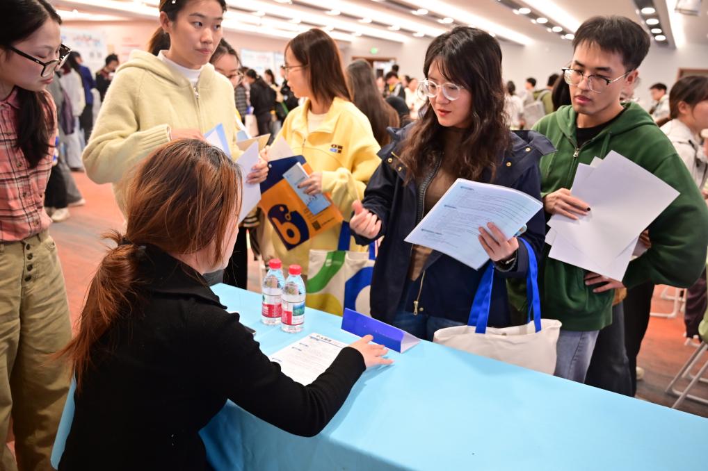宣讲环节结束后,活动进入了更为紧张热烈的互动与面试阶段。校园大使为同学们梳理并介绍了此次到场招聘的上海医药旗下十余家知名子公司的基本情况与招聘需求。同学们手持精心准备的简历,纷纷走向自己心仪的企业展位,与面试官进行一对一的深入交流。会场内人头攒动,气氛热烈,“如火如荼”一词正是此刻最佳写照。学子们自信地展示自我,积极争取心仪的岗位;企业代表们则认真评估,耐心解答,寻找与公司价值观和发展需求相匹配的未来之星。这一刻,梦想与现实激烈碰撞,机遇的大门正为有准备的青年豁然敞开。