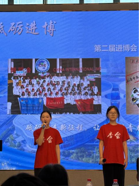 黄宝宇同学登台朗诵,以铿锵之声讲述中医药青年与进博志愿的动人故事,言语间尽显“中医进宝,志愿有我”的坚定信念,传递出新时代青年的热忱与担当;李昕田与魏琳轩同学则携手演绎《这里是上海》,在悠扬旋律中融注对这座城市与进博盛会的深情,既唱响上海“海纳百川”的胸襟,也诠释了中医青年“携百草之灵,赴世界之约”的志愿情怀,赢得全场热烈掌声,深深感染了在场师生。
