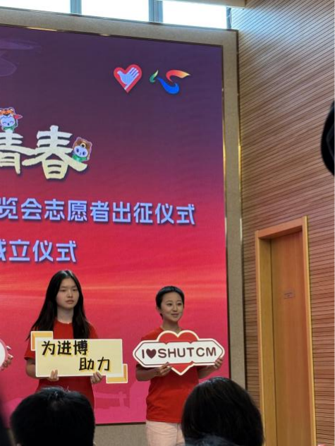 仪式现场,志愿者们与各学院伙伴庄严宣誓,将以真诚的热情服务八方来宾,以自信的姿态展现岐黄风采,以最饱满的精神投身进博工作。“中医进宝,志愿有我;携百草之灵,赴世界之约”——这不仅是口号,更是成人在线 “小叶子”们内化于心的坚定信念。