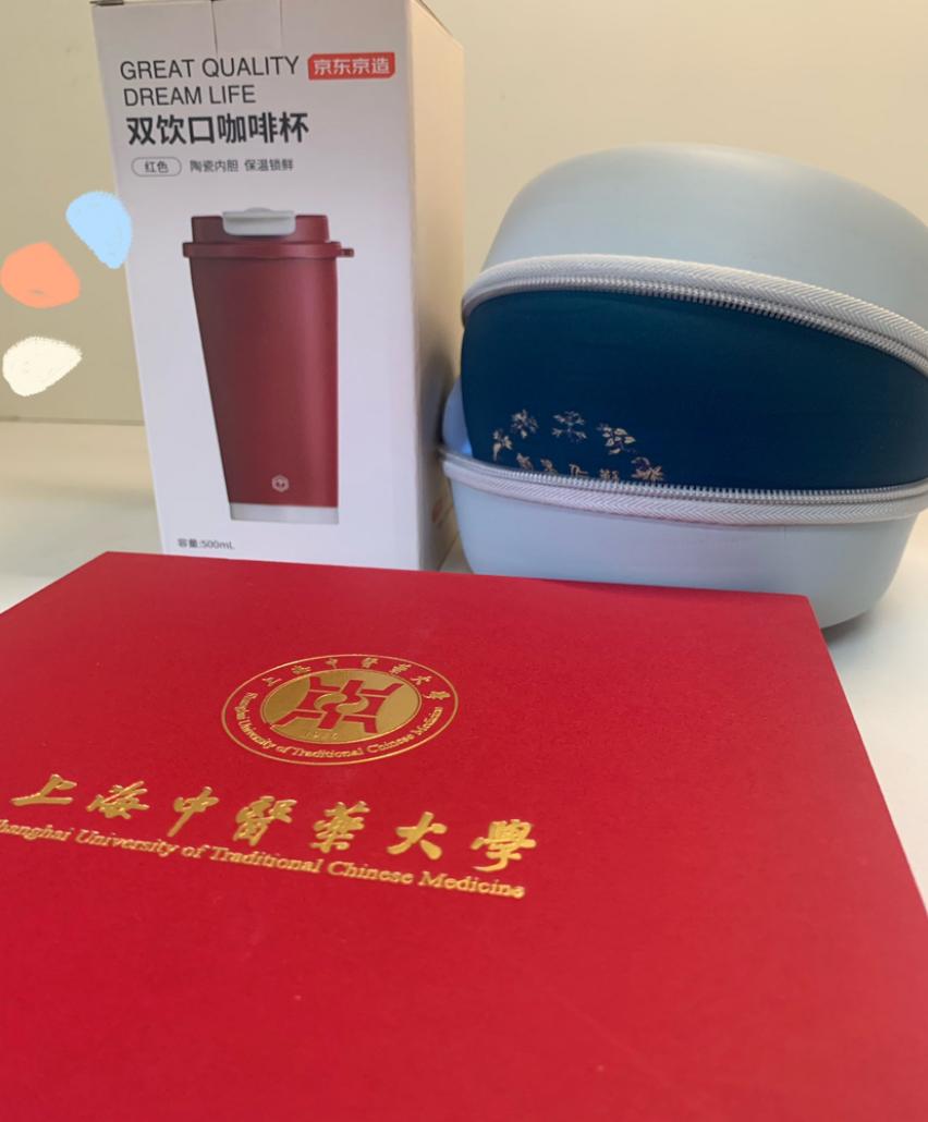 值得一提的是,学校为志愿者们精心准备了满载心意的专属礼包。这份温暖与激励,凝练于多款融合中医药文化与进博元素的文创产品之中:专属设计的保温杯,于微凉秋日传递持续暖意;印有学校标识与进博图案的枕头,为忙碌间隙提供休憩保障;实用美观的帆布袋,让中医药文化随“小叶子”的脚步轻盈流动;而那枚精致小巧的纪念徽章,则将这段宝贵的进博时光定格为永恒记忆。每一件物品,都承载着学校深切的关怀与期许。